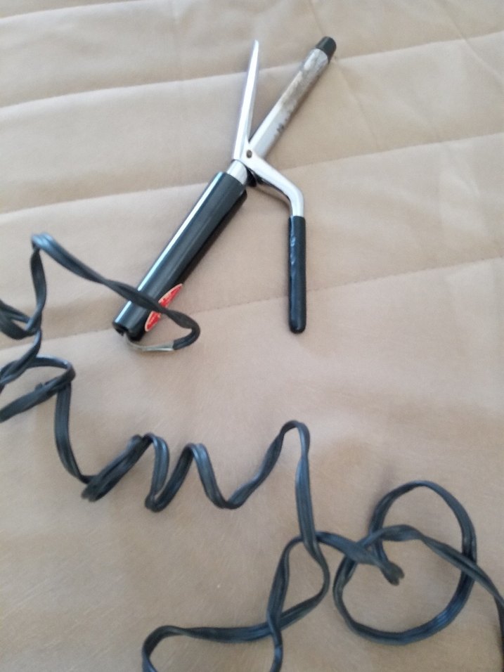 Gri maşa başlıklı siyah saç maşası, uzun kablo ile saç şekillendirme için.