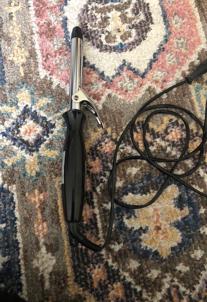 Gri varilli ve kelepçeli siyah saç maşası, uzun kablosuyla kolay kullanım sağlar. Saç şekillendirmek için uygundur. Sensino marka fotoğrafta göründüğü gibi sorunsuz fazlalıktan satıyorum. Düğmesini yukarı doğru tamamen itince çalışıyor. Güzel ısınıyor kalıcı bukleler yapıyor.