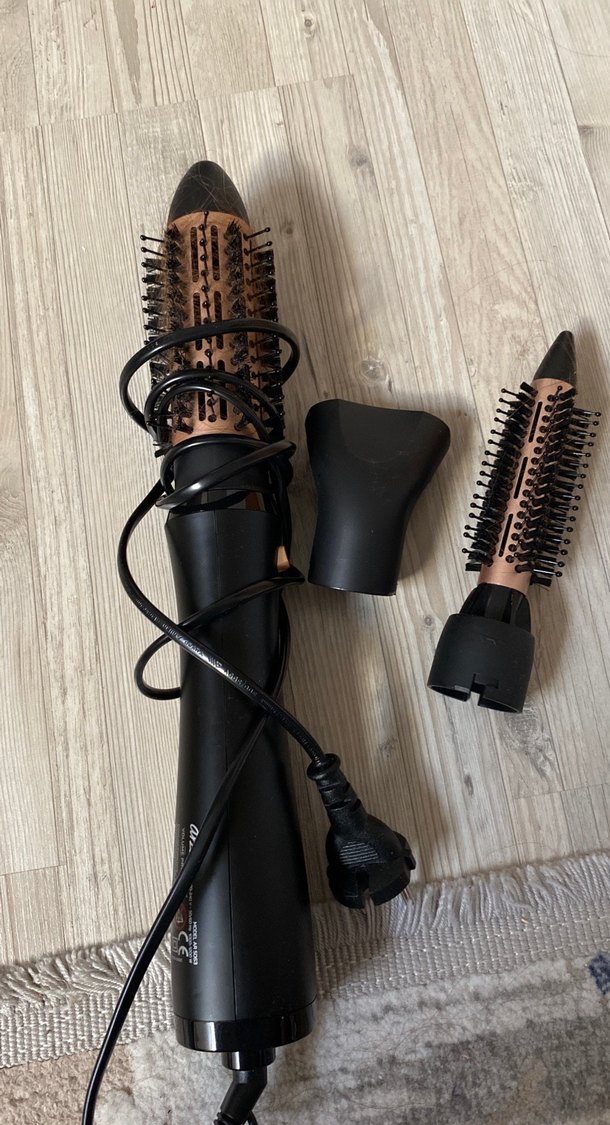 İki çıkarılabilir yuvarlak fırça başlığı ve konsantratör uçlu siyah saç şekillendirici. 3 adet başlığıyla birlikte gönderilecektir