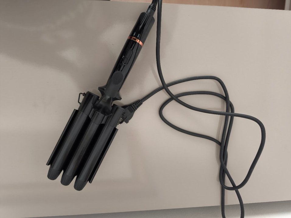 Saç dalgalandırmak için üçlü siyah saç maşası. Ergonomik sap ve ayarlanabilir ısı ayarları bulunur. Hiç Bi kusuru yok temiz