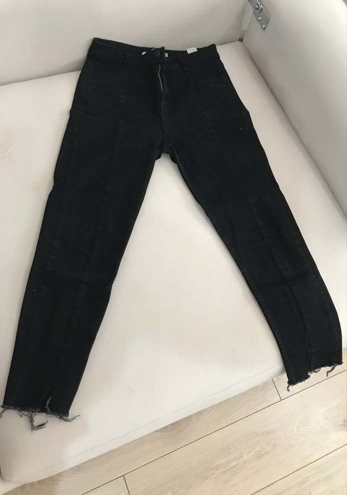 Siyah saçaklı yırtmaç detaylı kot pantolon