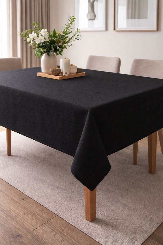 Siyah Sade Dertsiz Modern Masa Örtüsü