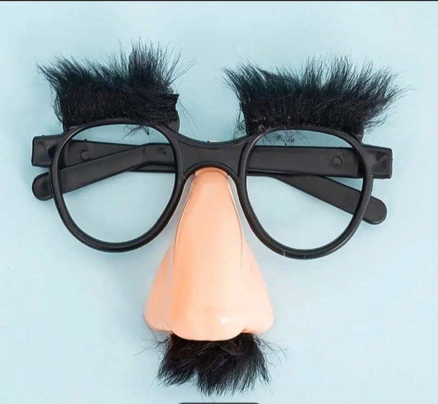 Siyah sahte kirpiklerin takılı olduğu, sahte burun ve bıyıklı komik gözlük çerçevesi. Eğlenceli görünüm için uygundur.