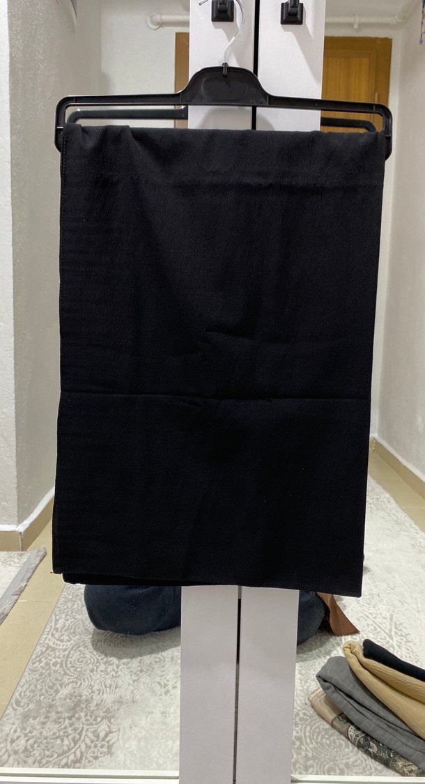 Dayanıklı kumaştan yapılmış, yemek yaparken kıyafetlerinizi koruyan düz siyah mutfak önlüğü.