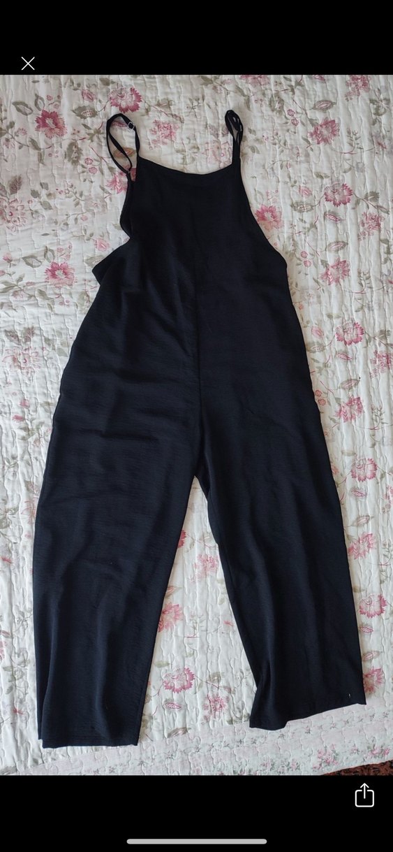 Siyah renkli, askılı ve yüksek yakalı tulum, midi boyda ve salaş kesimdedir. Drapeli tasarımıyla rahat ve şık bir günlük kıyafettir.