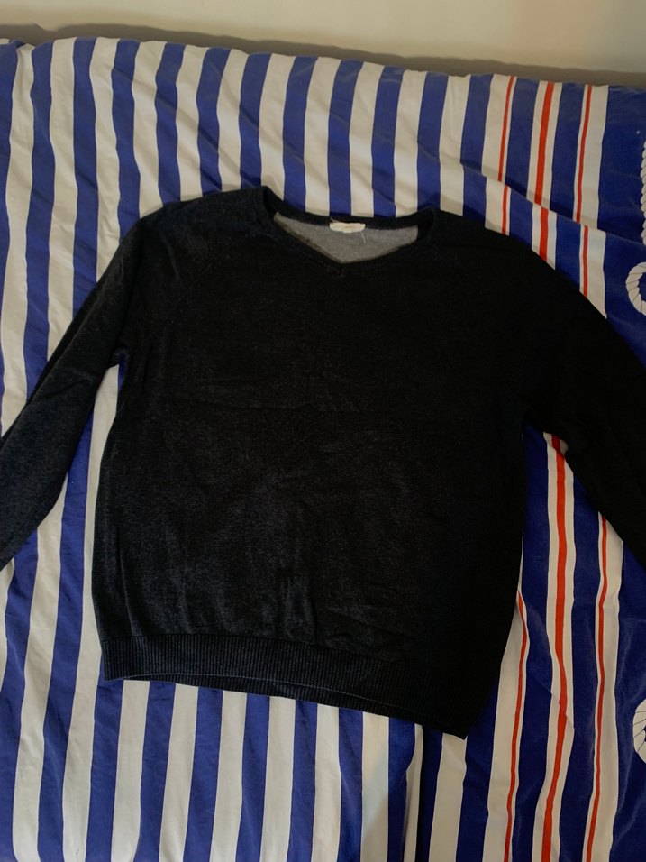 Siyah renkli, uzun kollu, salaş kesim Erkek sweatshirt, yumuşak sentetik kumaştan, günlük rahat kullanıma uygun.
