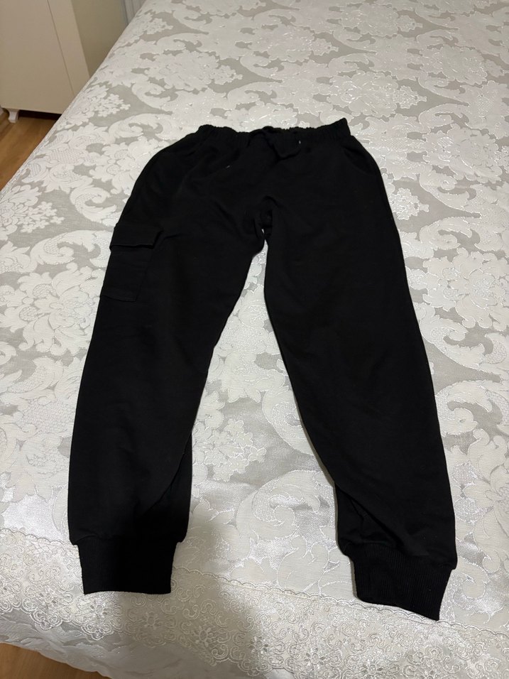 Siyah, salaş kesim, orta boy kadın eşofman altı. Yumuşak ve sıcak kumaştan, günlük rahat kullanım için uygun, zahmetsiz şıklık sunar.