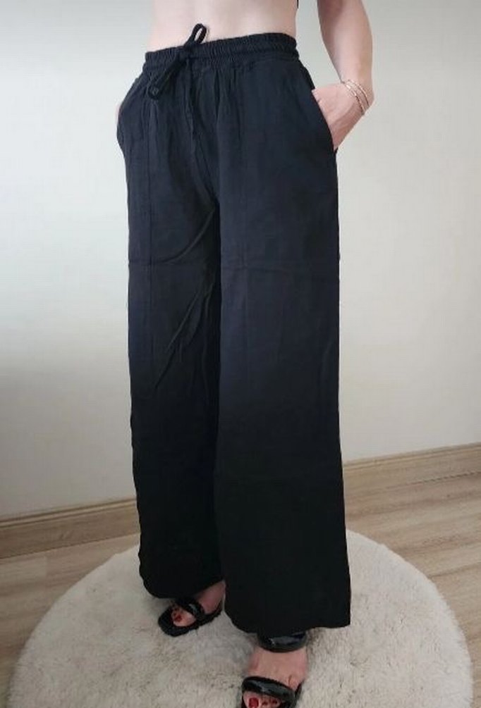 Siyah Salaş Kadın Kumaş Pantolon