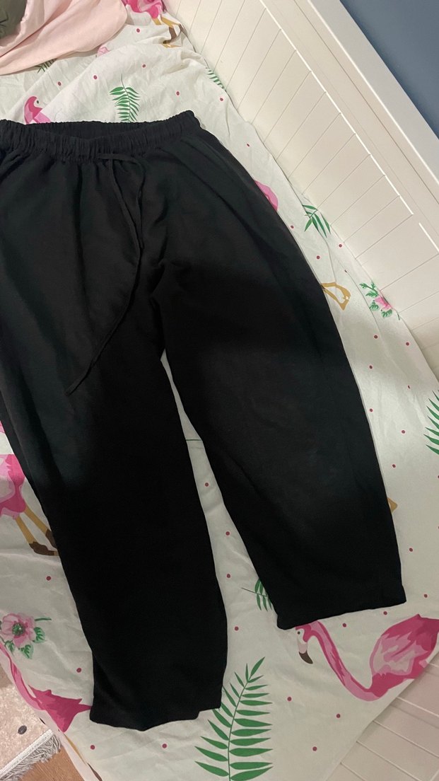 Siyah, salaş kesim kadın kumaş pantolon. Keten ve pamuklu gibi bir kumaşı var cok rahat şalvar pantolon diyede geciyo önceden almıstım boyum 1.73 boyu kısa geldi bana hic giyinmedim
