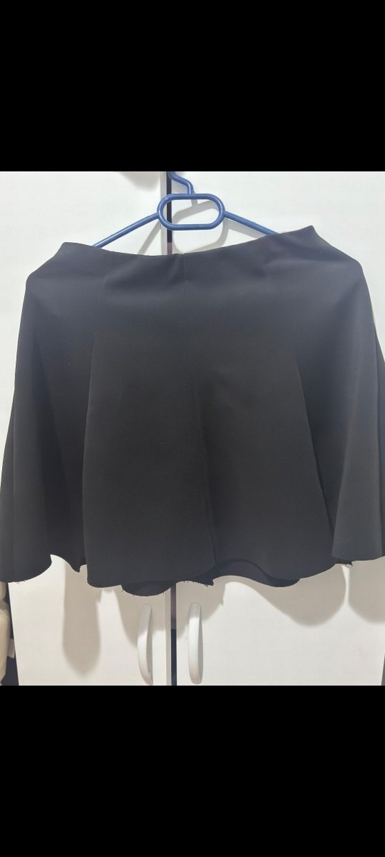 Sentetik kumaştan yapılmış, salaş kesim ve drapeli siyah mini etek. Minimalist ve gotik tarzıyla günlük kullanıma uygundur.