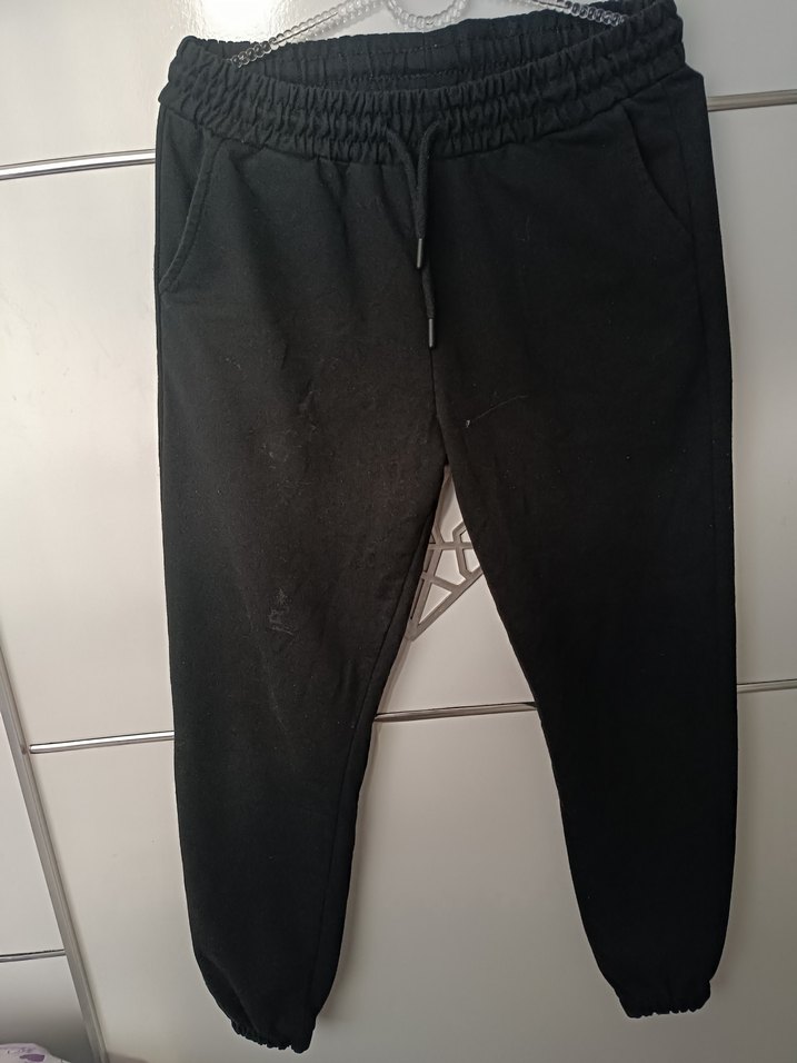 Siyah, yumuşak sentetik kumaştan yapılmış, salaş kesimli, elastik bel ve yan cepli kadın eşofman altı. Spor ve günlük kullanıma uygun.