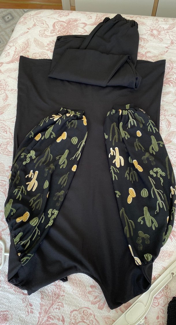 Siyah tesettür salaş kesimi ve yanlarda drapeli detayları ile dikkat çekiyor. Yumuşak sentetik kumaştan üretilmiş, günlük kullanım için rahat ve bohem tarzda bir parça. Kolları balon geliyor tatlı bir takım bir yerinde kusur yoktur