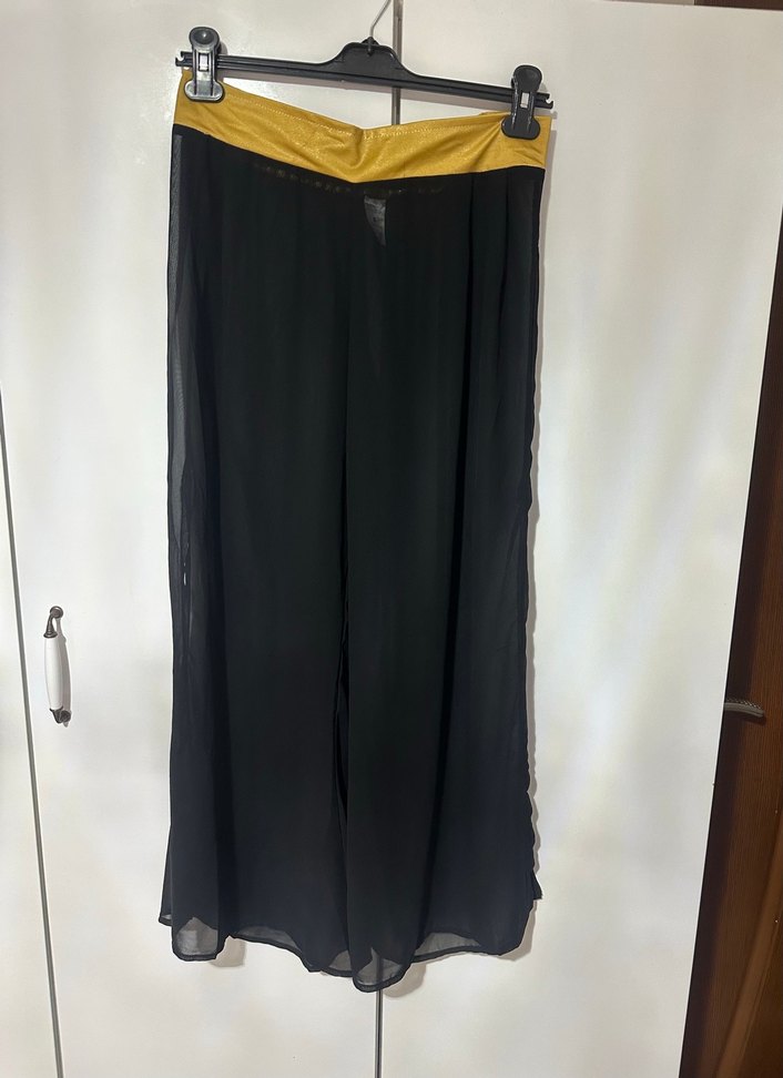 Siyah, sarı bel detaylı, salaş kesim ve uzun şifon pareo