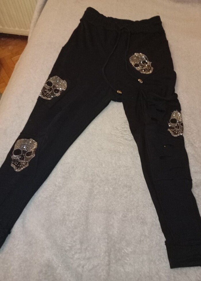 Bu ürünü sevdigim için kiloluyken bir iki tane almıştım. Paçaları dar penye ama kaliteli penye şalvar üstündeki kuru kafalar ışıl ışıl parlıyor her giydigimde dikkat ceker sorarlar bizede getir diye fakat artıl üretimde yok üstte çok şıl duruyor 2 taneyi kendime ayırdım aldıgım fiyattan daha ucuza satıyorum üretimi olmayan ürünlerde lütfen pazarlık istemeyin. Zatenaldıgm fiyattan satmıyorum.. Bedindenemin degilim ya L ya XL bakıp yazıcam.. Paçalarında yırtık cep detayı