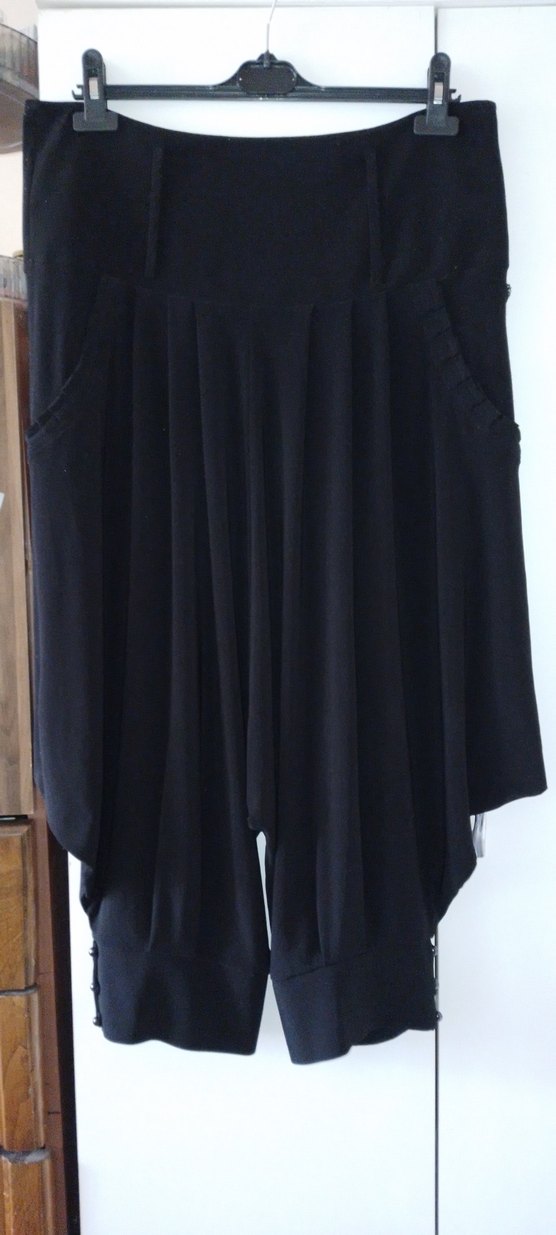 Siyah şalvar model ayak bilekleri düğme detaylı oantalon ipeksi kumaştan, gotik tarzı ofis şıklığıyla buluşturuyor. Beli fermuarlıdır 42 beden 2 veya 3 kere kullanılmıştır.