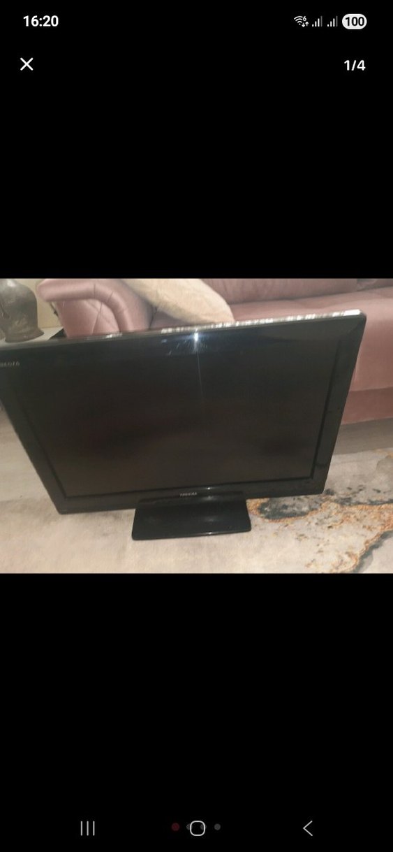 Siyah renkte, düz ekran ve sağlam ayaklı tocihba tv lcd kumandası yok hd ve sikart giriş li ezik çizik kırık ve görüntü bozukluğu ses bozukluğu yok