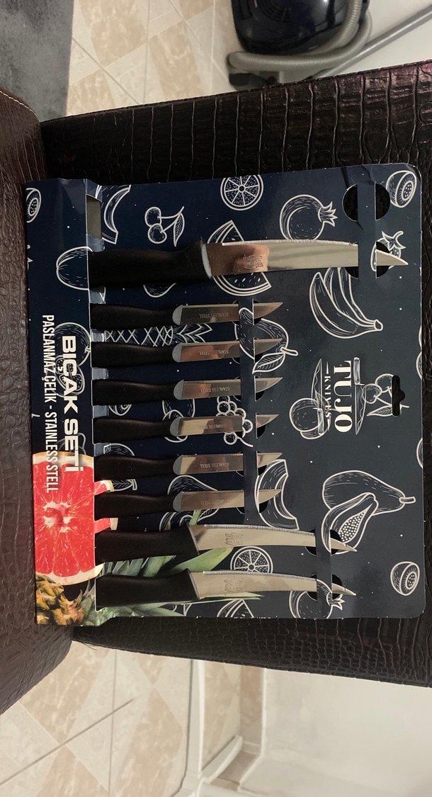 Paslanmaz çelikten üretilmiş, siyah saplı 8 farklı bıçak içeren set. Keskin ve dayanıklı bıçaklar, mutfakta farklı kesim işleriniz için uygundur.