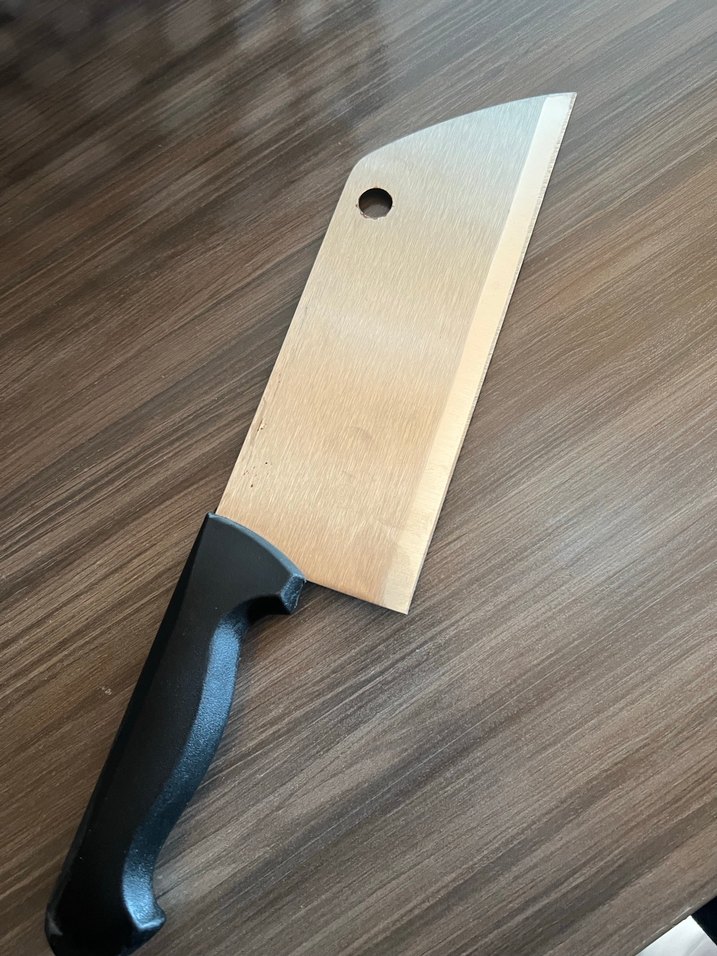Keskin paslanmaz çelik bıçağı ve siyah ergonomik sapı bulunan mutfak bıçağı, rahat kullanım sağlar. Üstte asma deliği mevcuttur.