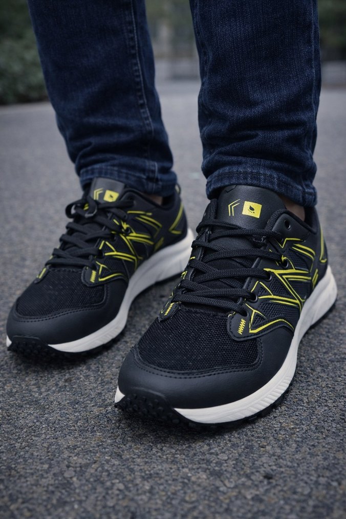 Siyah Sarı Desenli Erkek Spor Ayakkabı