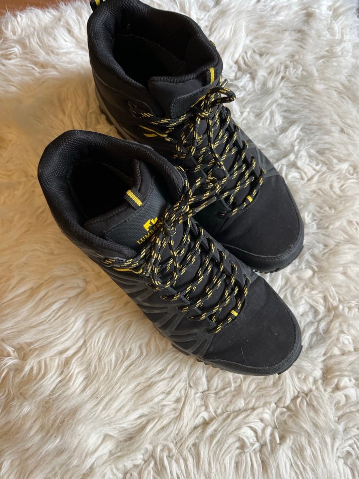 Siyah ve sarı detaylı kauçuk erkek outdoor botları, cırt cırtlı ayar özelliği ile rahat kullanım sunar. Trend spor tarzına uygundur. Sadece bi kaç kez kullanıldı sıfır ayarında