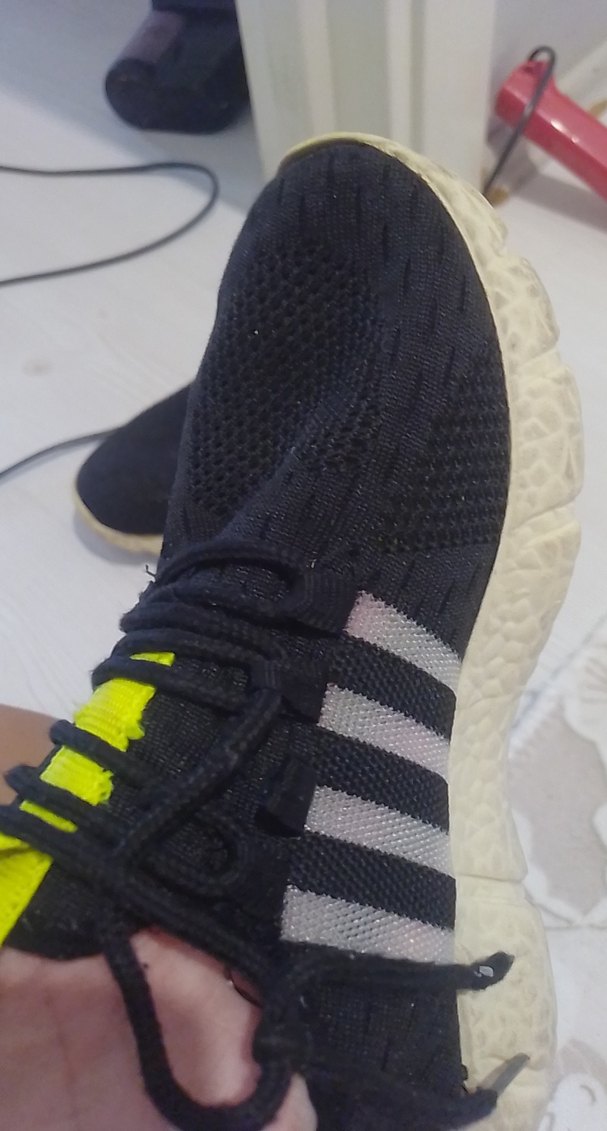 Sarı renkli erkek spor ayakkabı bağcıkları, günlük spor ayakkabılara renkli ve canlı bir dokunuş katar. (dışında hiç sıkıntı yok iç topuk yeri zedelenmis