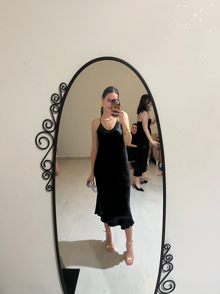 Siyah saten elbise