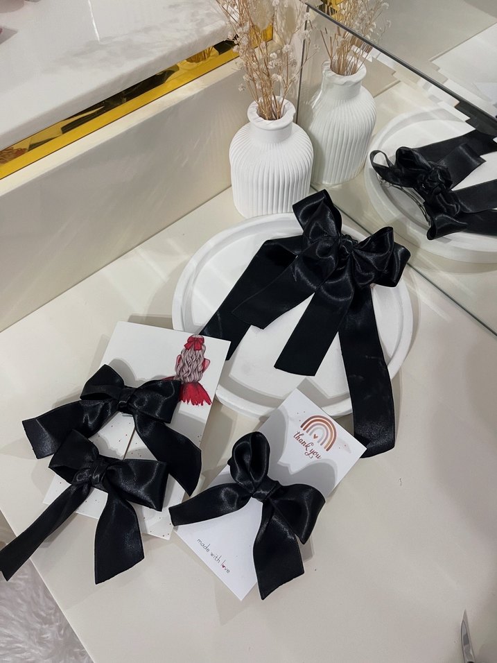 Siyah Saten Fiyonk Saç Aksesuarları