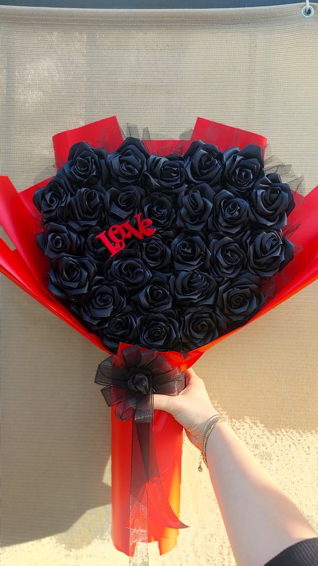 siyah saten gül buketi