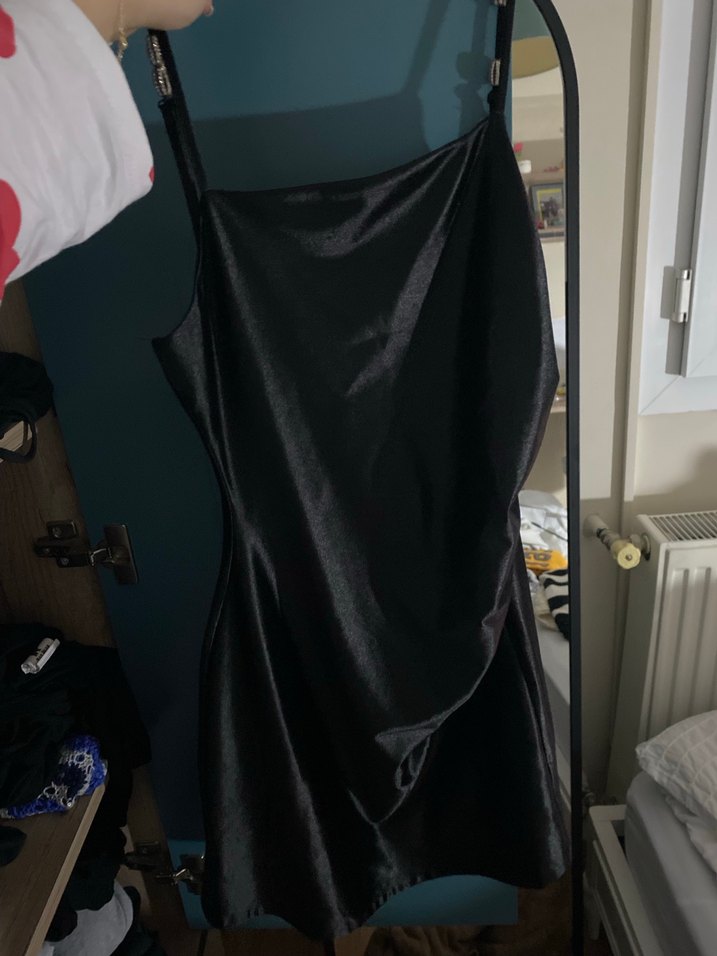Siyah Saten midi/mini QuzuElbise