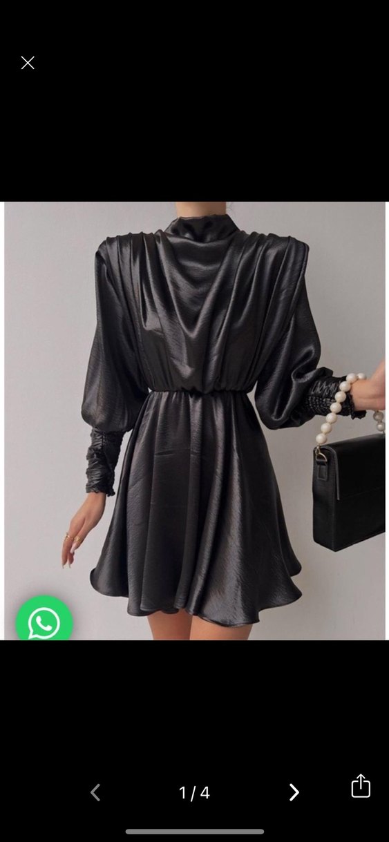 Siyah saten mini elbise, parlak yüzeyli, yüksek yakalı ve uzun kolludur. Draped detayları ve bol kesimiyle göz alıcı ve avant-garde tarzda bir seçenek. ✨ Moda Çelikler’den alınmış 2 kez giyilmiştir herhangi bir sorun kusur yoktur. 1.58 46 kiloda da 1.58 54 kiloda da giydim beli lastiklidir o yüzden bedene uyum sağlıyor. İlk aldığımda vatkasız olduğundan mankendeki gibi durmuyordu ekstra vatka taktırdım terzide son hali benim üstümdeki gibidir.