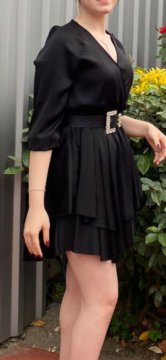 Siyah Saten Mini Elbise