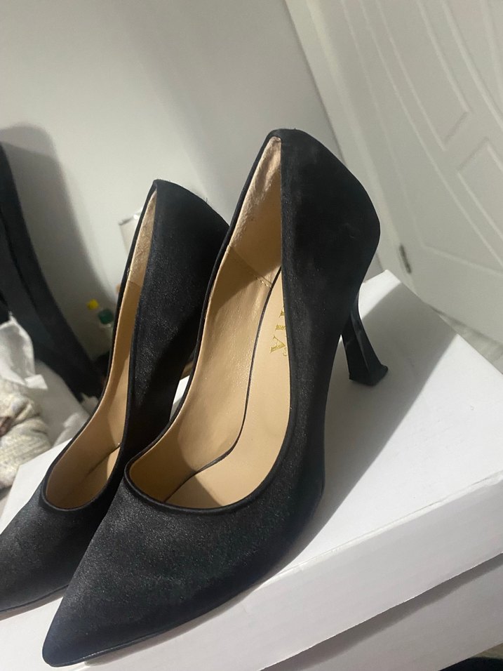 Siyah Saten Stiletto Topuklu Kadın Ayakkabı