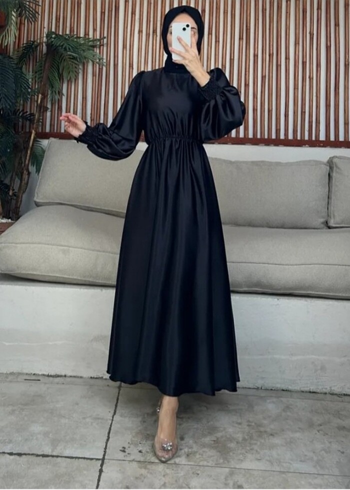 Siyah saten tesettür elbise