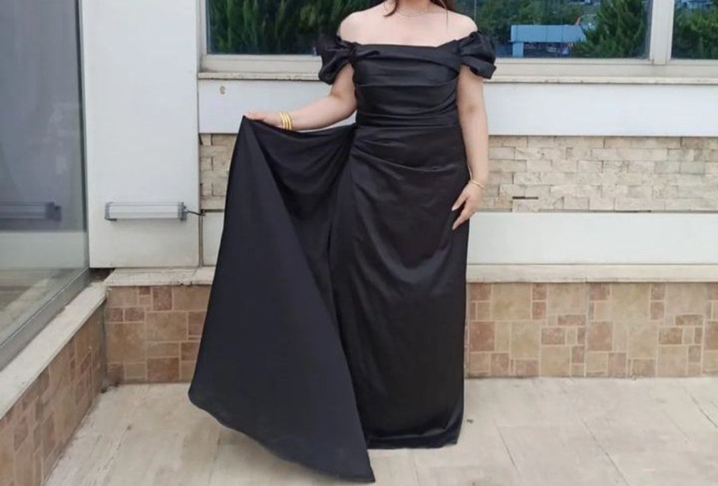 Siyah uzun abiye elbise, kayık yaka. Düğün vb. özel günler için uygun. 1 kez giyildi.