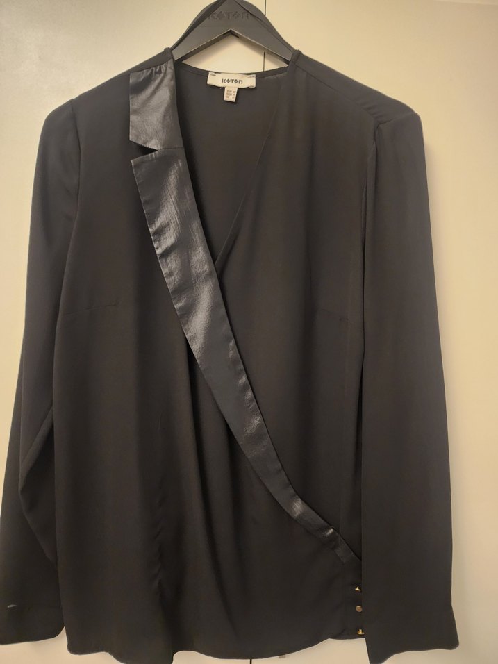 Siyah Saten Yaka Kadın Bluz