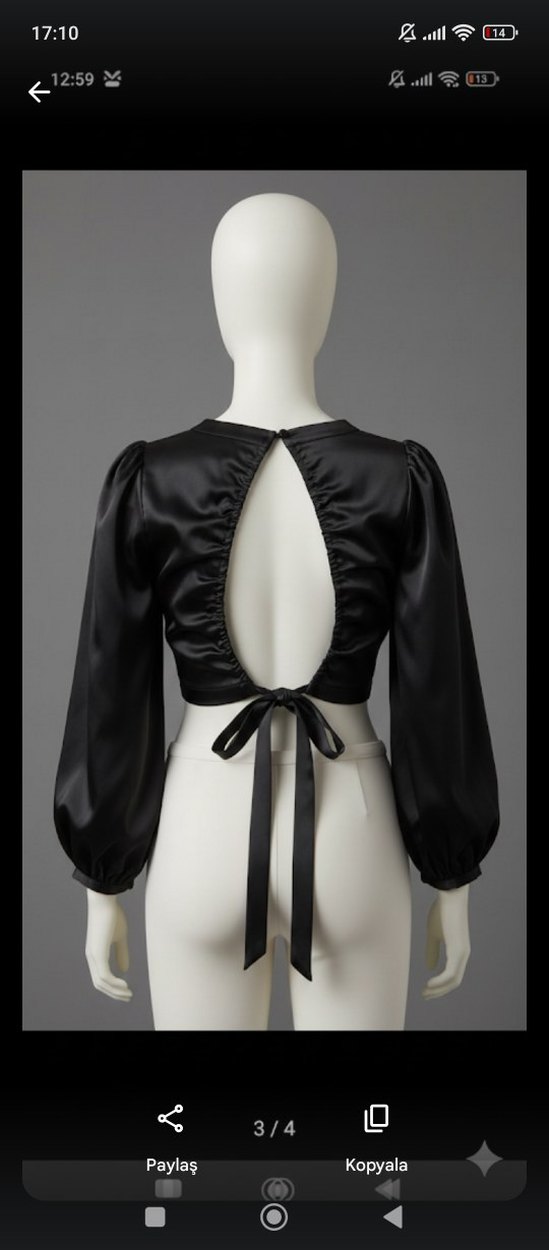 siyah saten yeni Zara marka arkadan bağlamalı mini üst