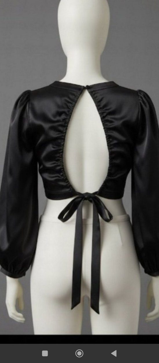 siyah saten yeni Zara marka arkadan bağlamalı mini üst