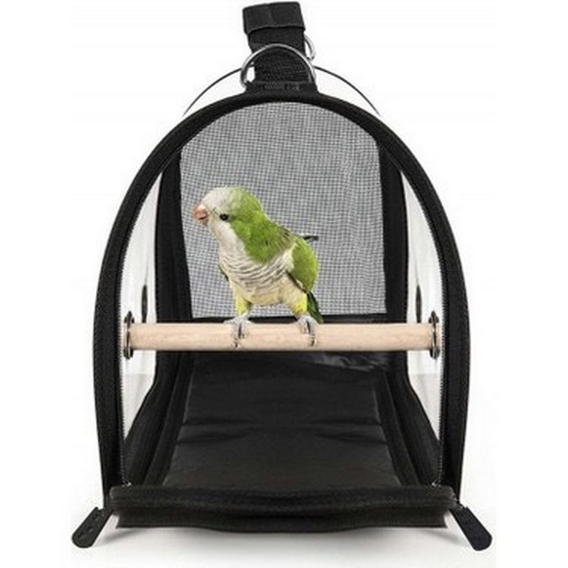 Ayarlanabilir kayışlı, file yan panelli siyah şeffaf evcil hayvan taşıma çantası, iyi havalandırma ve görünürlük sağlar. Hiç kullanmadık kuşumuz öldü maalesef sıfırdır