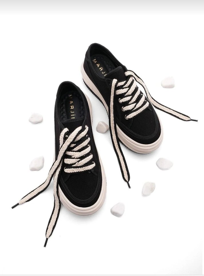 Siyah Şeritli Bağcıklı Kadın Sneakers