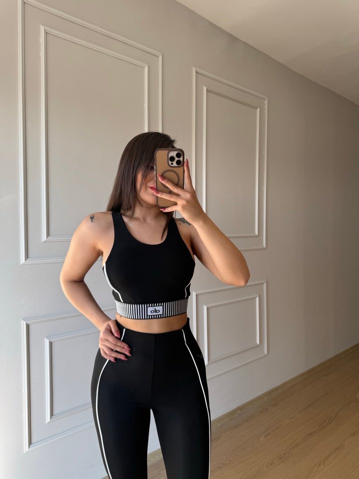Siyah Şeritli Straplez Mini Spor Üst takım bedenleri mevcut