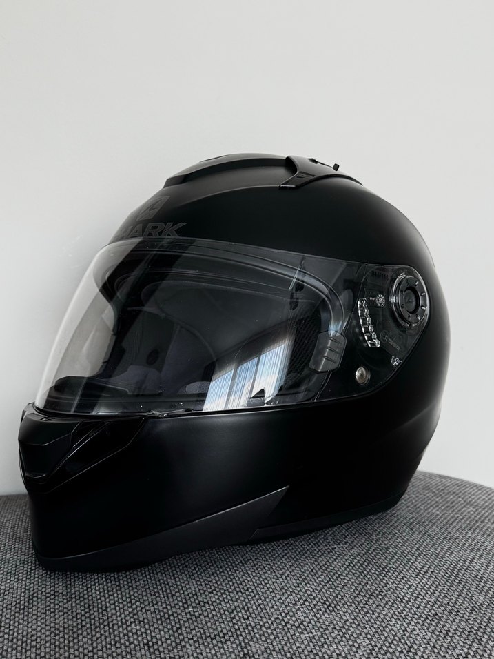 Sade siyah motosiklet kaskı, cam vizör ve tokalı kayışla temel koruma sağlar. Detaylı bilgi sorabilirsiniz. Fiyat teklife açıktır. Unisex.