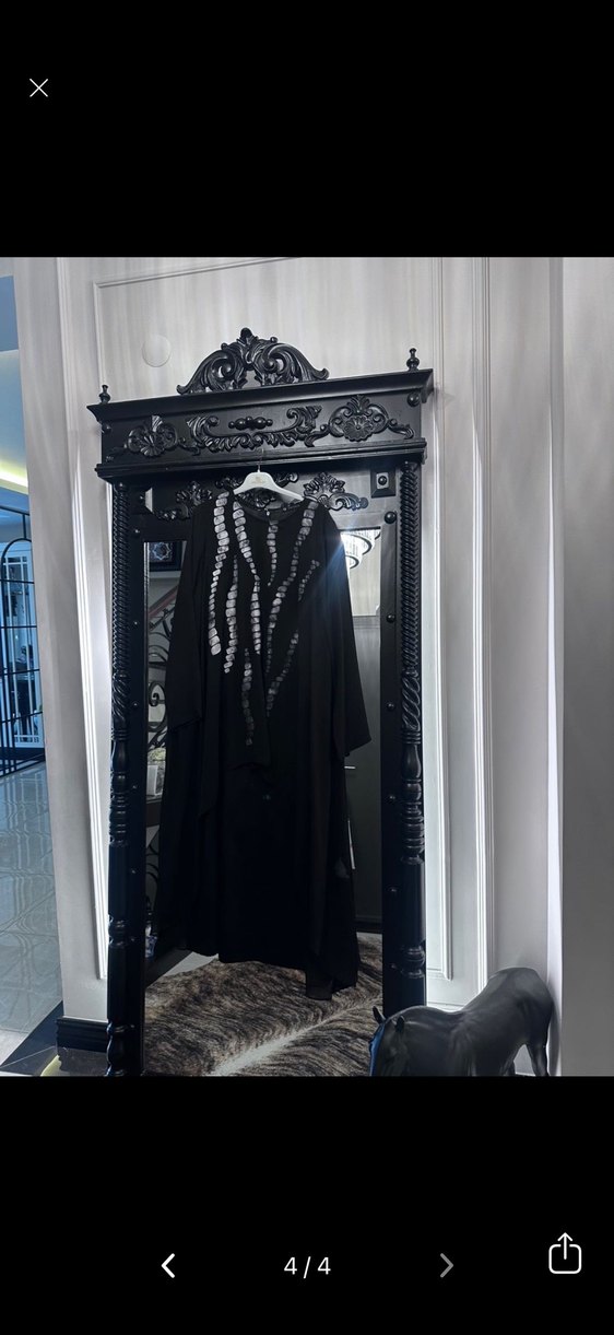 Siyah gotik tarzda, ön kısmında işlemeli detaylara sahip elbise 48-50 beden