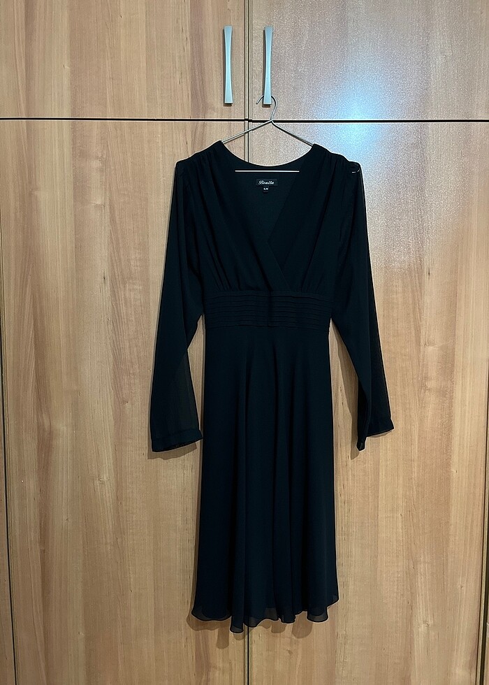 Uzun kollu belden kuşaklı (kuşağı sabit) bir kere nişanda giydim. Kilo verdiğim için bir daha giyemedim.