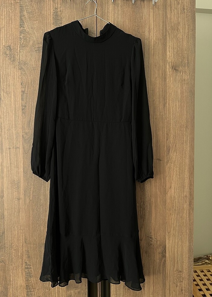 Kolu hafif transparan, kendinden astarlı. Abiye olarak kullanılabilir. Midi boy. Ölçülü bir elbise. Hiç kullanılmadı.
