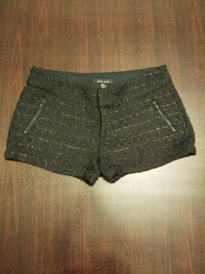 Kumaşında sıra sıra parlak dokuması vardır. Fit kesim siyah mini şort. Sokak stiline uygun, dış mekan kullanımı için ideal. Önde iki fermuarlı cebi vardır.Oldukça şık bi parça
