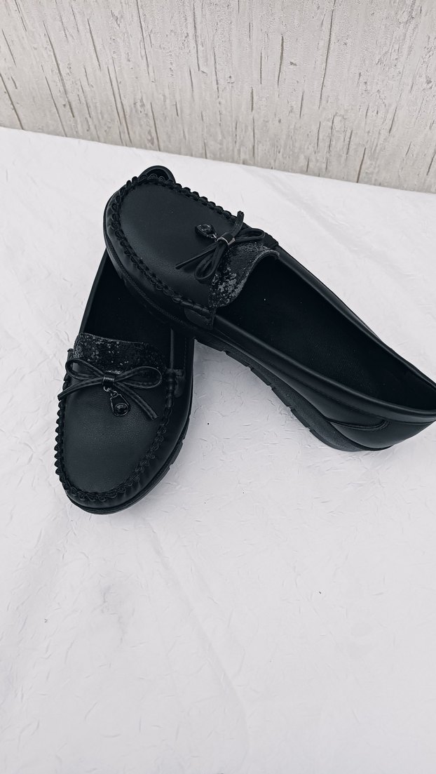 Siyah sim desenli ve tokalı kadın babetleri, blok topuklu ve günlük kullanıma uygun rahat bir tasarıma sahiptir. 38 numara ortapedik taban yumuşak hafif dolgu topuk hiç giyilmemiş kadın ayakkabı