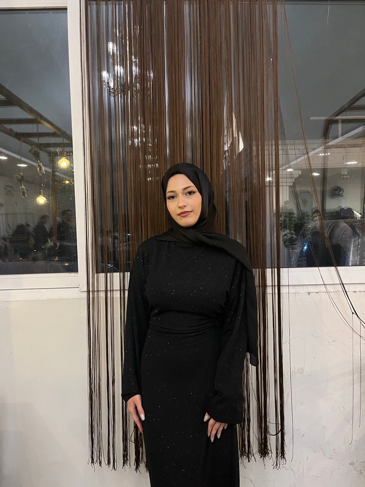 Canlı simli siyah arkadan bağlamalı çift astarlı elbise