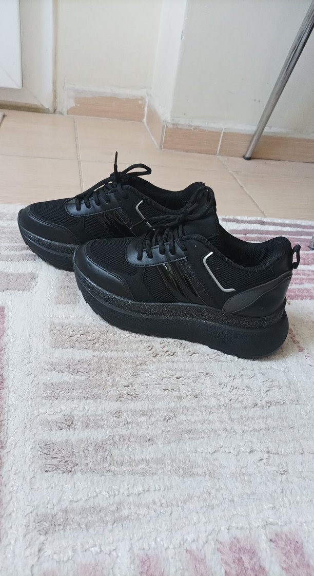 Siyah renkte, kauçuk malzemeden yapılmış Spor ayakkabı, çocuk ve bayan için uygundur 37 numara hiç giyilmedi buda diğer ürün gibi alınıp küçük geldiği için kaldı