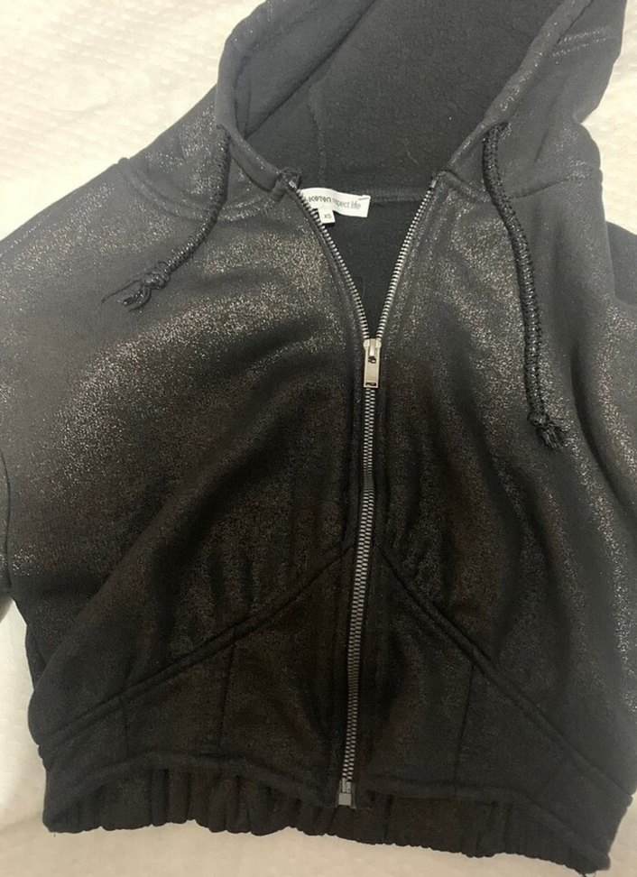 Siyah Simli Fermuarlı Sweatshirt