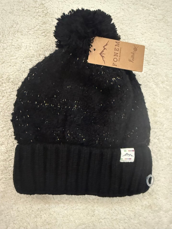 Siyah simli renkli, ponponlu, Yün kadın bere. İç kısmı fleece kumaşlı, sokak modasına uygun rahat ve sıcak bir model. ❄️